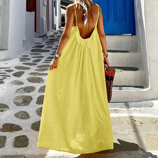 Oversized Cotton Linen Spaghetti Strap Boho Dress - YellowMaterial Composition : Natural Fiber Closure Type : Single Breasted Fabric Type : Polyester Neckline : O-Neck Waistline : Natural Sleeve Style : regular Dresses Length : Knee-Length Sleeve Length(cm) : Sleeveless Pattern Type : Solid Silhouette : A-LINE Material : Polyester Elasticity :...