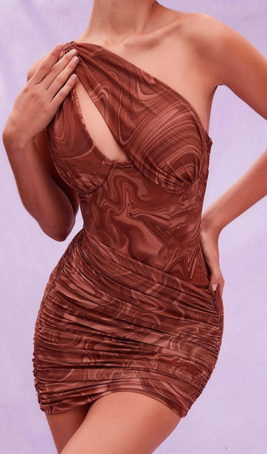 Swirl Print Cut Out Mini DressOur 'Clementine' dress is a beautiful way to tap into style. It's crafted from a soft power mesh in a dreamy cocoa swirl print and backed in our special power mesh to sculpt and shape the figure from within. acting like shapewear that is...