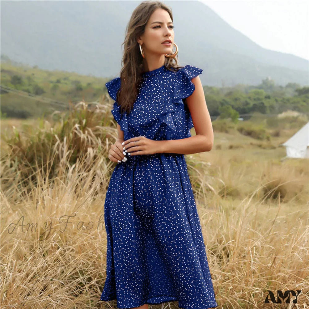 Amy Fashion - Butterfly Sleeve Ruffles Medium Long Vacation Dress