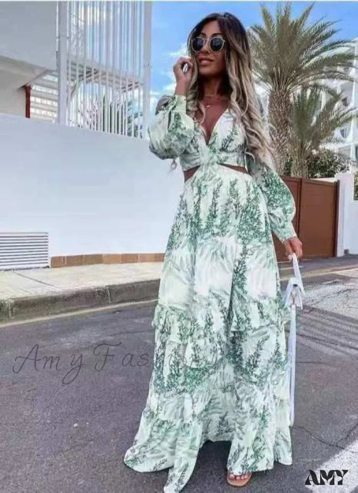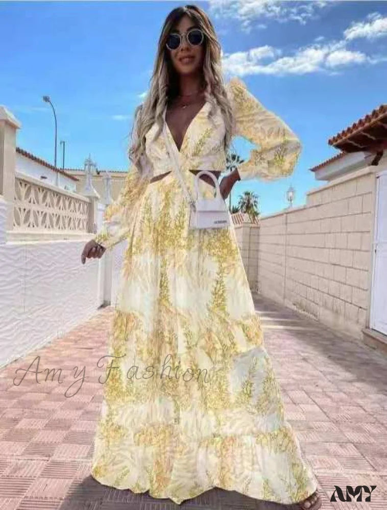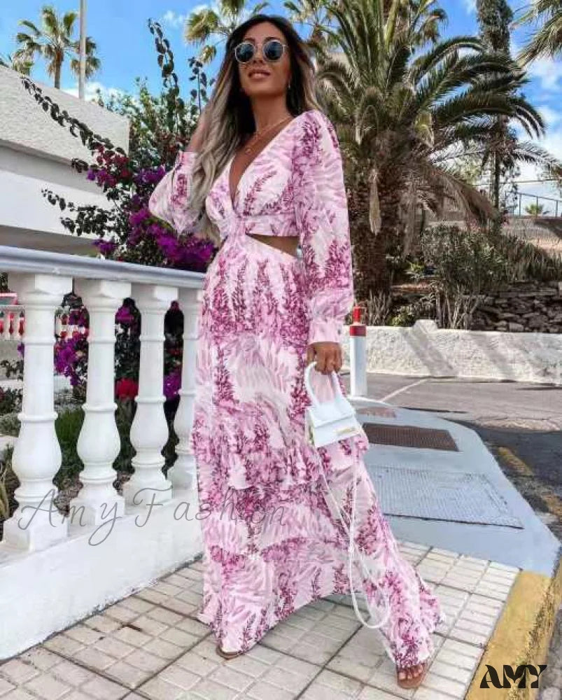 Amy Fashion - Sexy V-neck Hollow Out Backless Dress