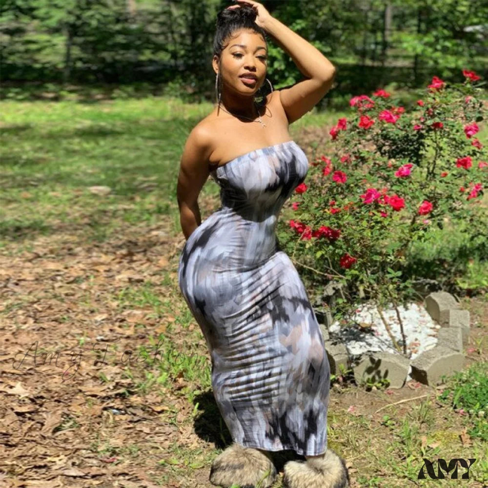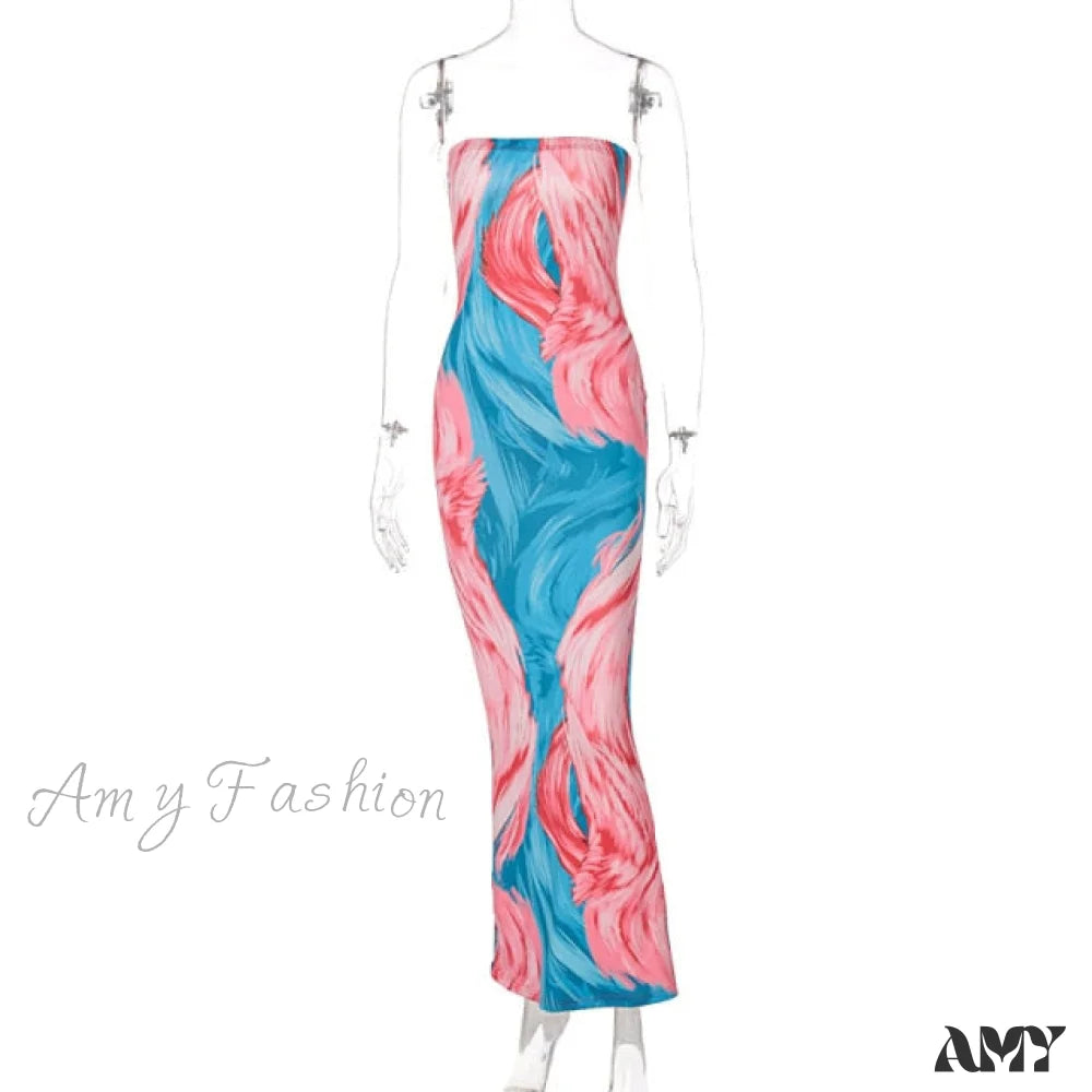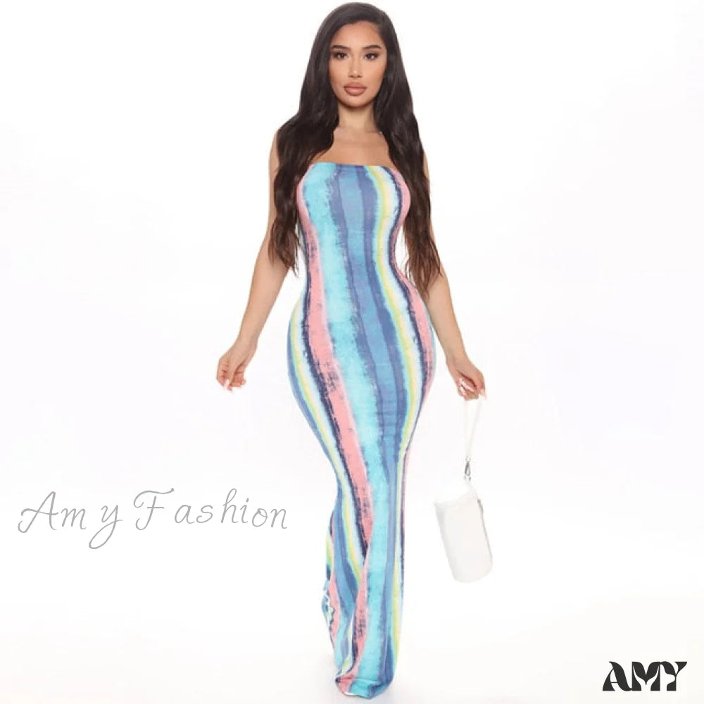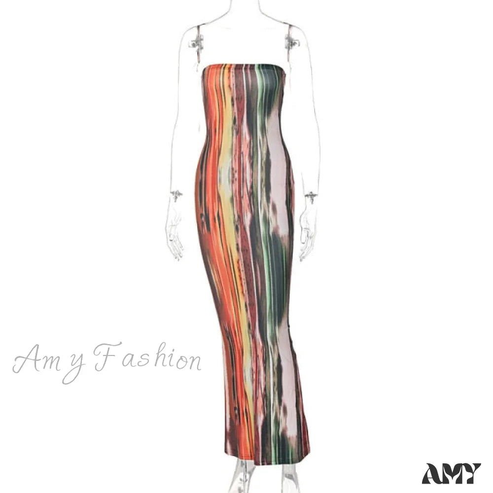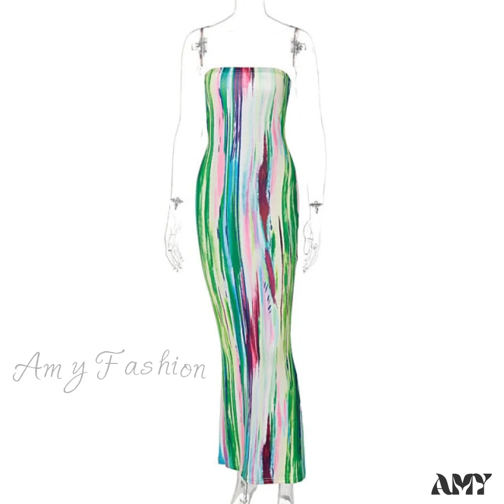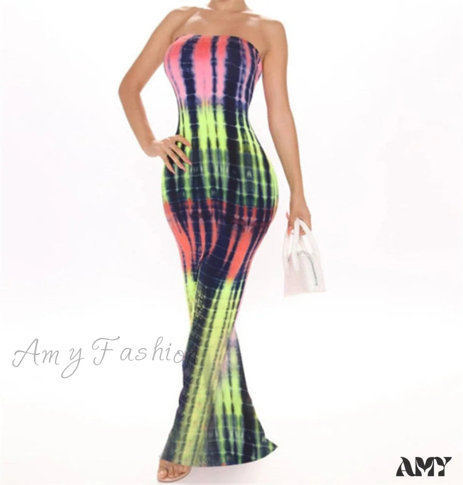 Amy Fashion - Colorful Strapless Maxi Bodycon Dress