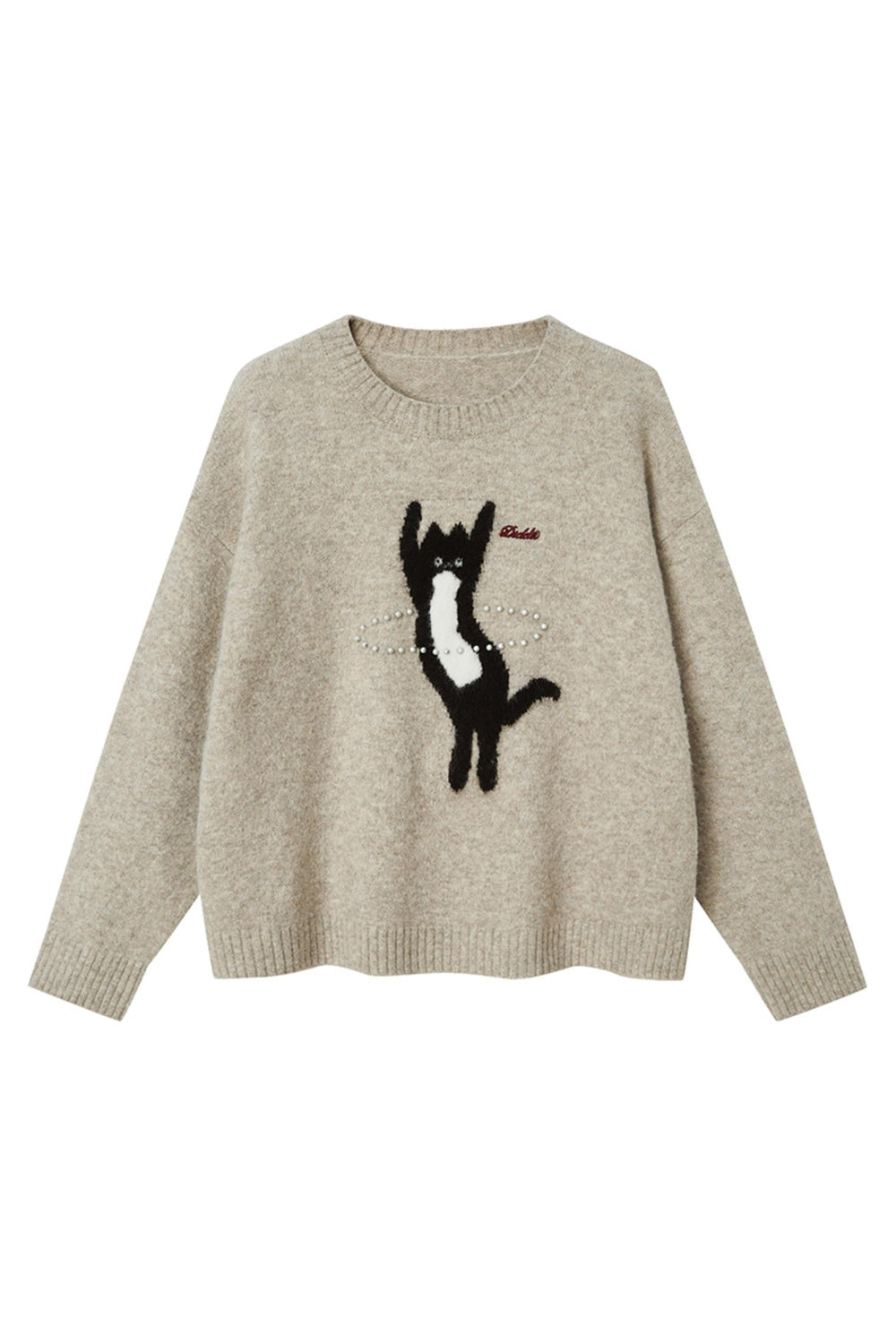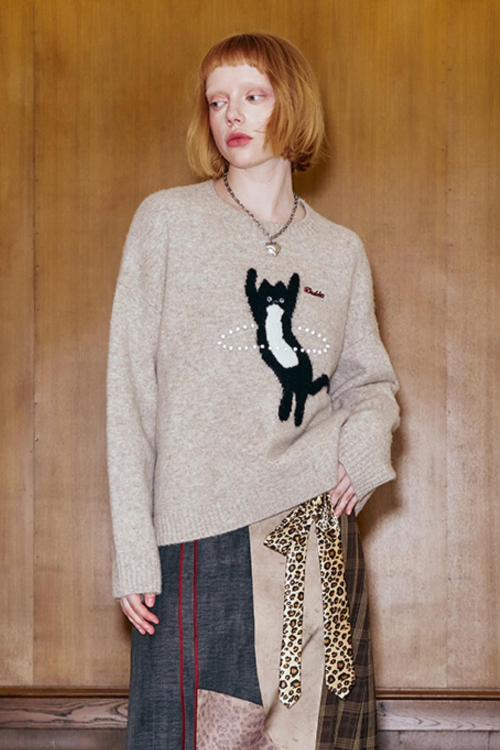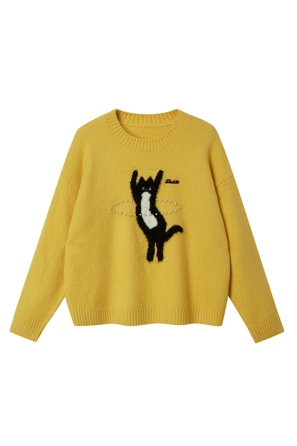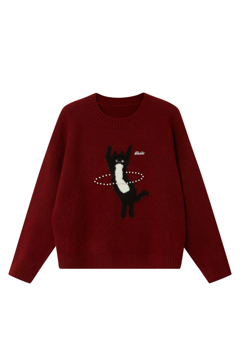 Introducing the Dancing Cat Knitted Sweater, a purr-fect addition to any wardrobe! Made from high-quality materials, this sweater features a playful dancing cat design that is sure to delight. With its cozy knit fabric and unique style, it's the purr-fect way to stay warm and stylish. Order yours today!