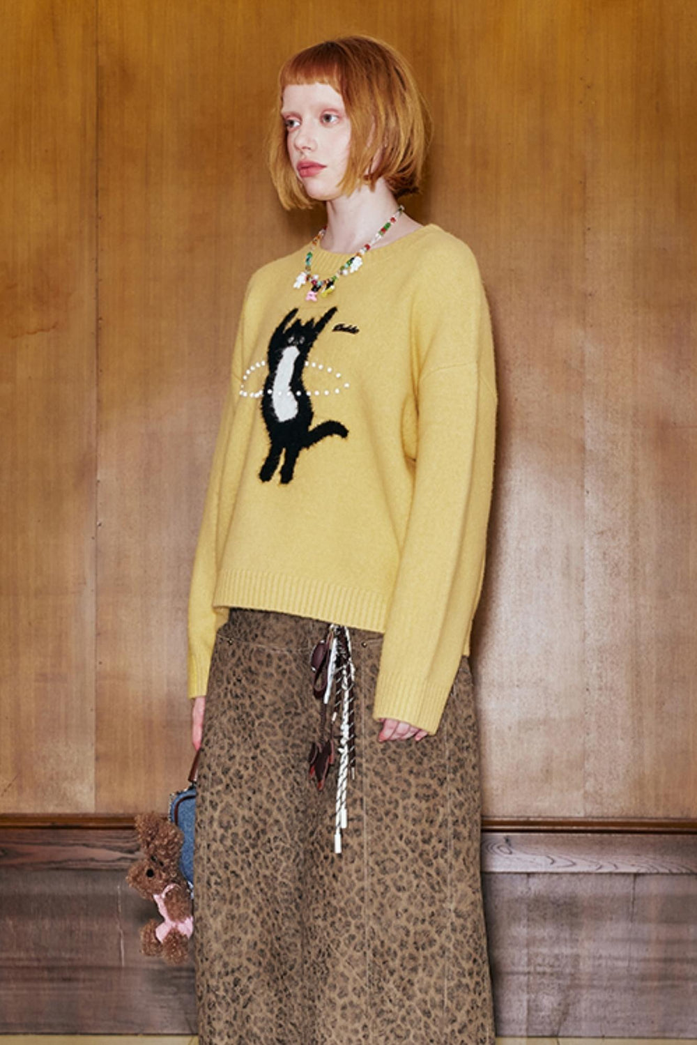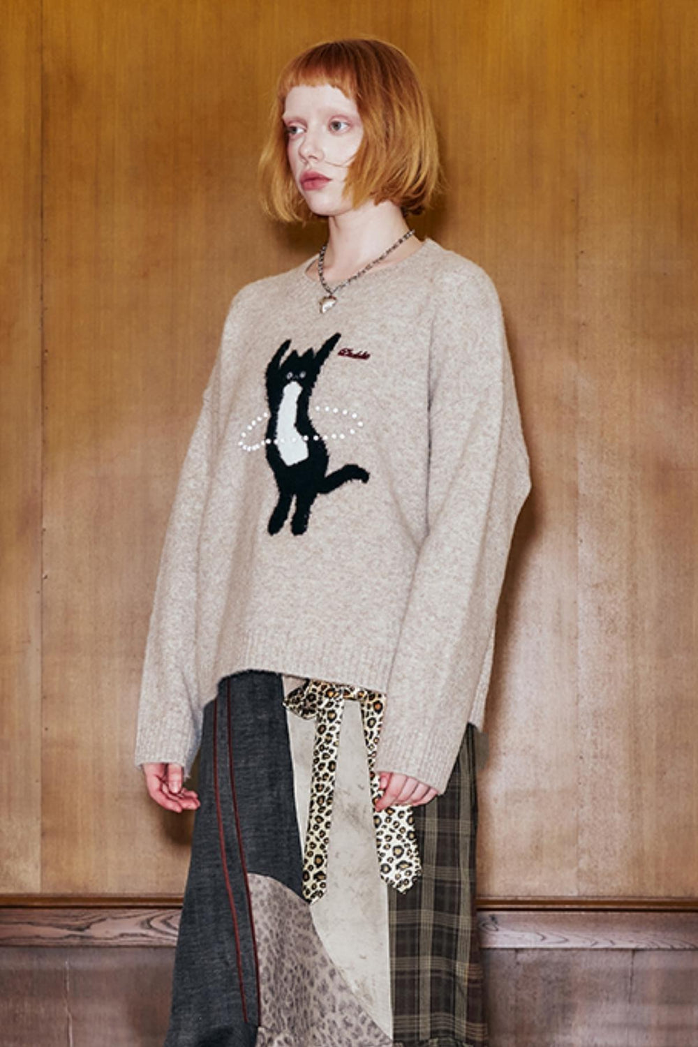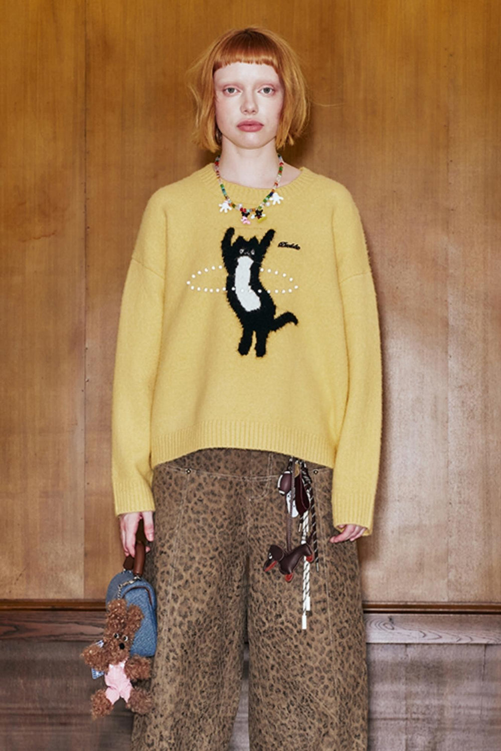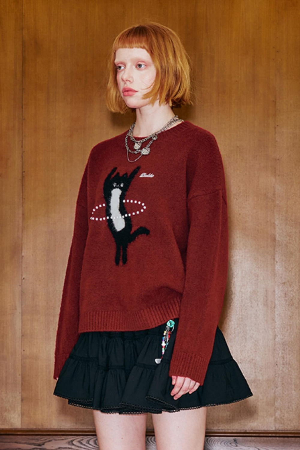 Introducing the Dancing Cat Knitted Sweater, a purr-fect addition to any wardrobe! Made from high-quality materials, this sweater features a playful dancing cat design that is sure to delight. With its cozy knit fabric and unique style, it's the purr-fect way to stay warm and stylish. Order yours today!