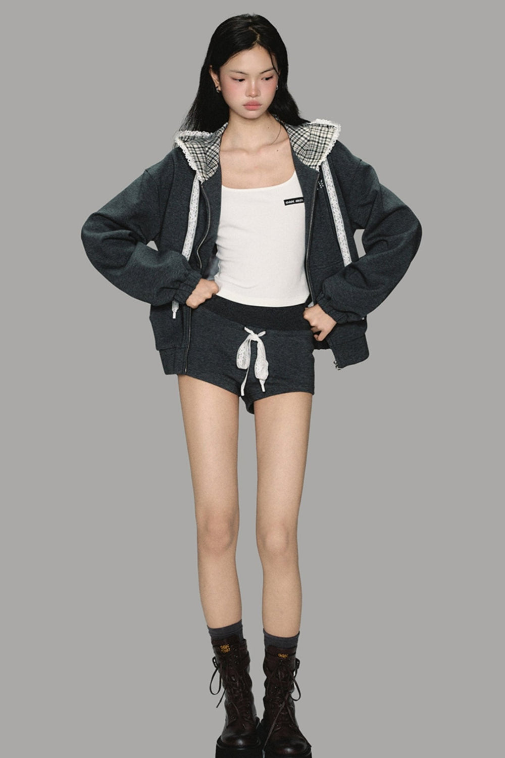 Upgrade your athletic wardrobe with our Lace-Trim Athletic Hoodie Set-Up! This stylish and functional set includes a lace-trimmed hoodie that adds a touch of elegance to your workout gear. Stay comfortable and on-trend while you hit the gym or run errands. Elevate your fitness game today!