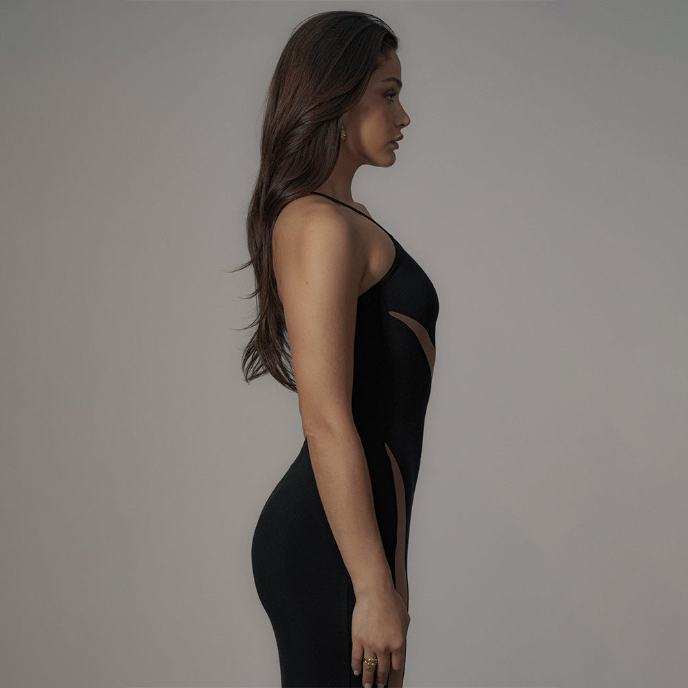 Fabric name: brushed milk silkPattern: solid colorCraftsmanship: collage/stitchingStyle: off-shoulder styleSkirt length: long skirtSkirt type: high waist skirtSleeve type: sleevelessWaist type: high waistPopular elements: backless