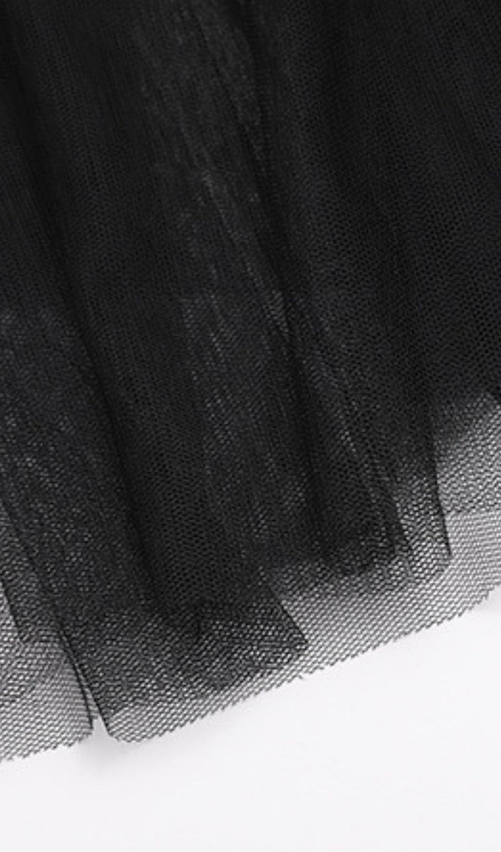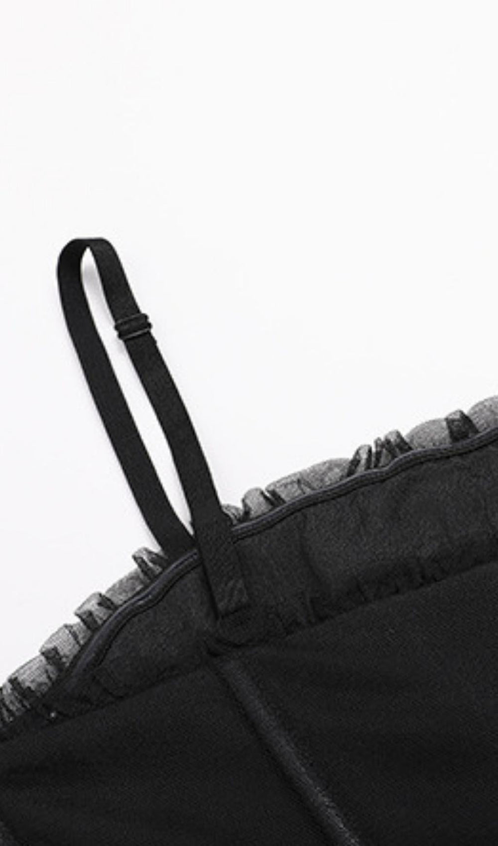 This dress is for the party. Showstopping gown with a fitted bodice and spaghetti straps. Dreamy tiered ruffles cascade down the skirt creating a flattering A-line shape. Crafted from tulle for a romantic look for your next special occasion.