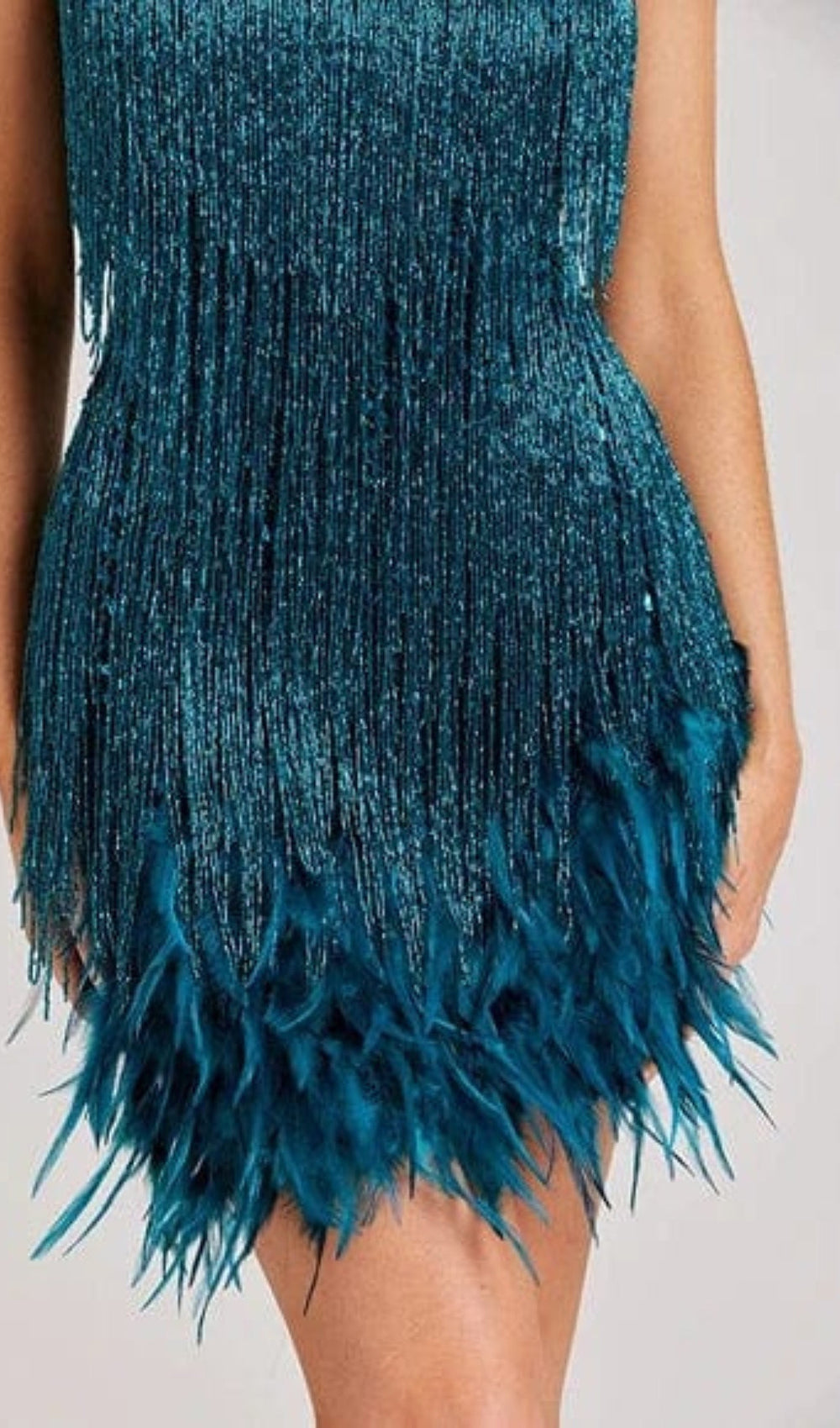 If you want to be a sexier. more attractive woman. check this out. You deserve this dress. The waist-in design shows off your beautiful figure. Feather design. let you become the crowd in the most dazzling sexy girl.Dark greenmakes you cute and charming.