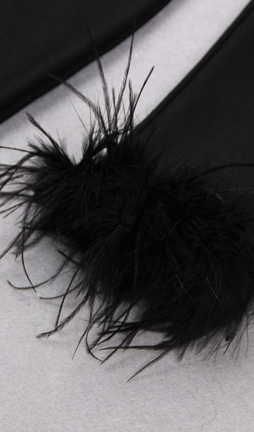 It's cut from soft stretch-jersey and structured with bound seams and zip fastenings through the back . it has a close fit with padded shoulders and a sweetheart neckline. sleeves inlaid with tonal Ostrich feathers. Wear yours with tonal accessories and mules.