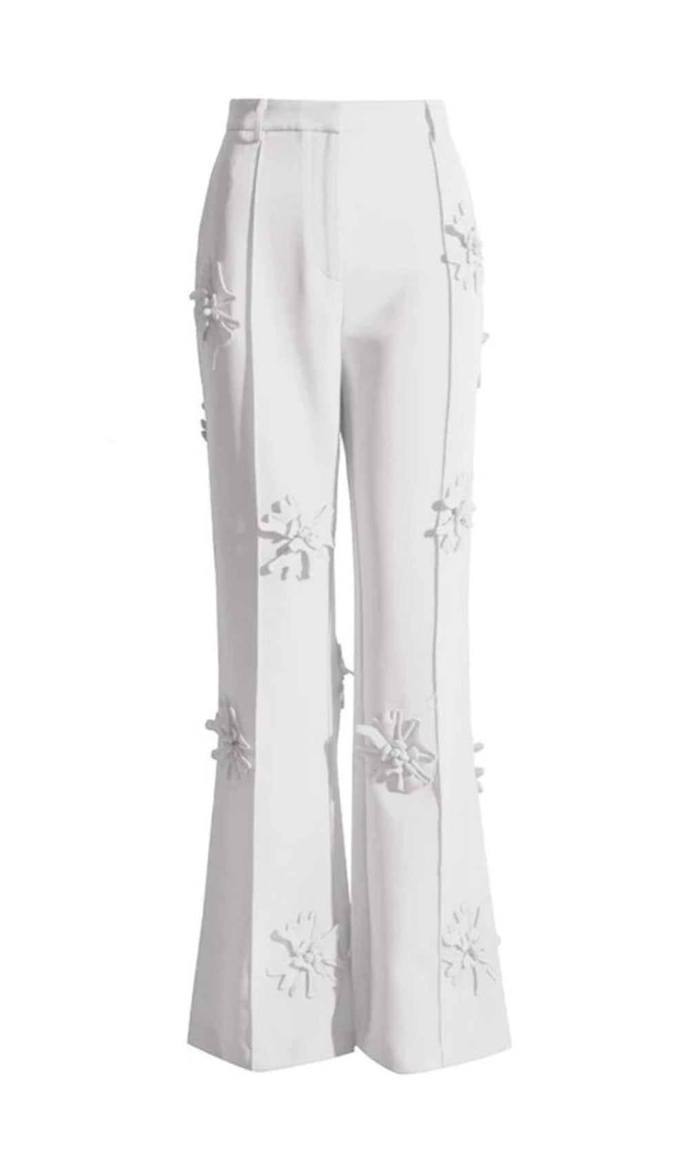 The same simple style whether you also bored. better to change the feeling. Try on this bold. eye-catching and beautiful pair of pants. Breaking the limitations of the traditional pants version. the design is unique. The three-dimensional flowers of the same color are inlaid on the fabric. which is fashionable and elegant. and full of vitality. The tailoring is also snug and comfortable. allowing you to dress confidently and boldly with your own attitude. A slightly raked silhouette will flatter your legs and make your calves straighter and longer. elongating your proportions and showing off your perfect figure. Pair them with pointy heels to make you stand out from the crowd. whether you're shopping or dating.