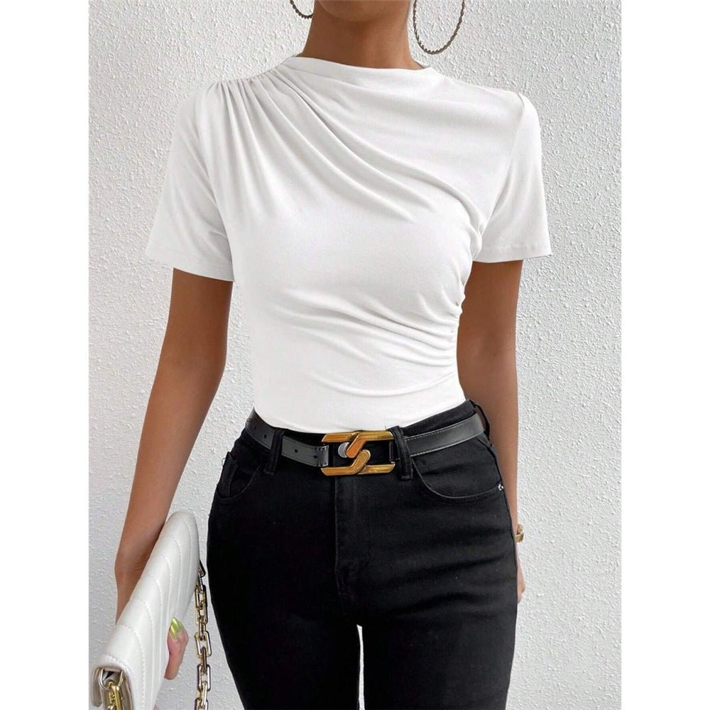 Dare to dominate the day in our Pleated Slim Fit Short-sleeved Women's T-shirt! This bold and flattering design will keep you cool on any adventure. Take on risks and rock your style with this must-have addition to your wardrobe. Go ahead, be bold and fearless!