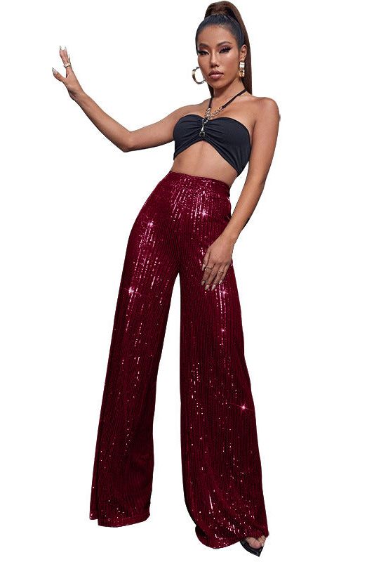 These casual sequined pants offer a comfortable and stylish fit with a loose drape design. Perfect for any occasion, the subtle sequin detailing adds a touch of glamour to your look. Made for comfort and style, these pants are a must-have in any wardrobe.