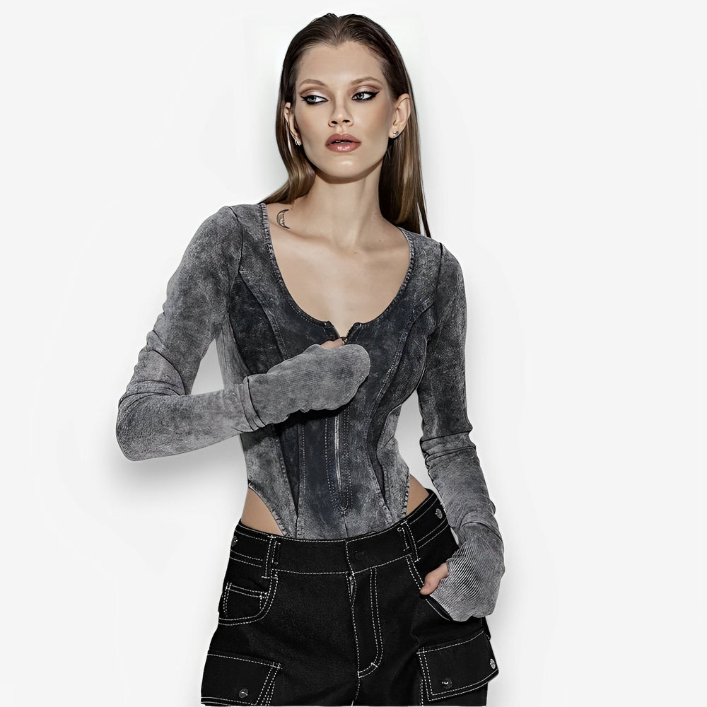 This stylish Washed and Distressed Tight Top is perfect for a variety of occasions. Enriched with unique colors and a soft finish, this top will be sure to become a go-to in your wardrobe!