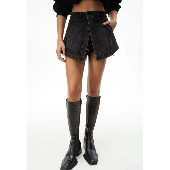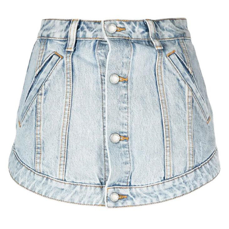 Feel great and look stylish in this Denim fake mini Skirt. Crafted from quality fabric and designed to fit the contours of your body, this skirt is sure to turn heads. Perfect for any occasion.