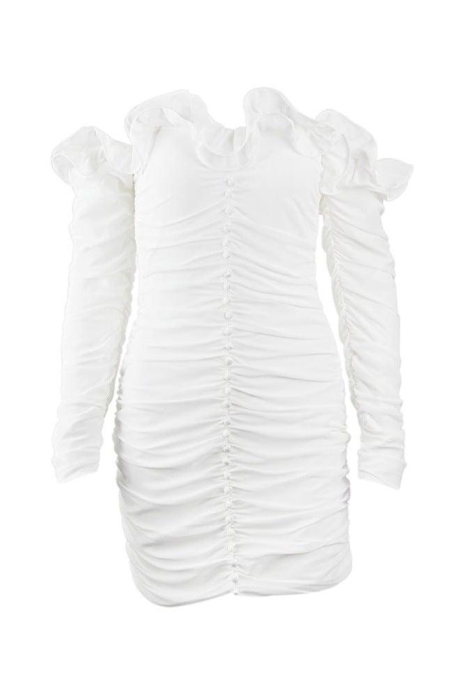 This elegant dress is crafted from lightweight chiffon fabric, with a long-sleeve single-shoulder neckline and an easy-fit, slimline silhouette. The design features an adjustable drawstring waist and a flattering mid-length skirt, perfect for any formal occasion. With its breathable, wrinkle-free construction, this dress offers comfort and style.