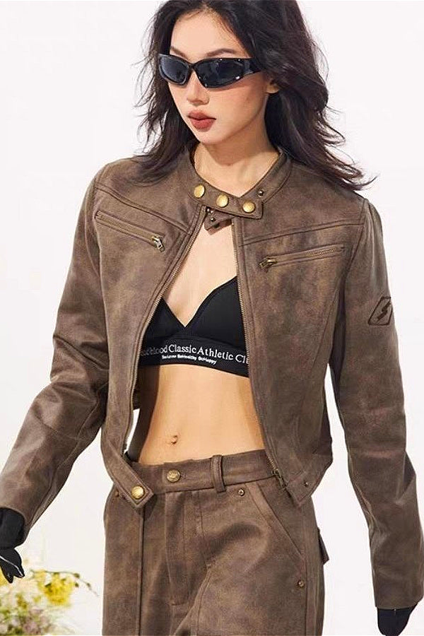 • Fit: Slim Fit • Neckline: Stand Collar • Sleeve Type: Regular Sleeve • Sleeve Length: Long Sleeve • Details: Color Block / Paneled • Composition: Suede
