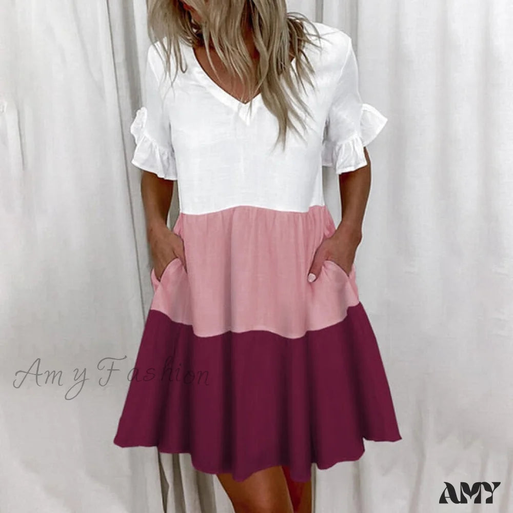 Amy Fashion - Sexy V Neck Floral Print Vintage Dresses