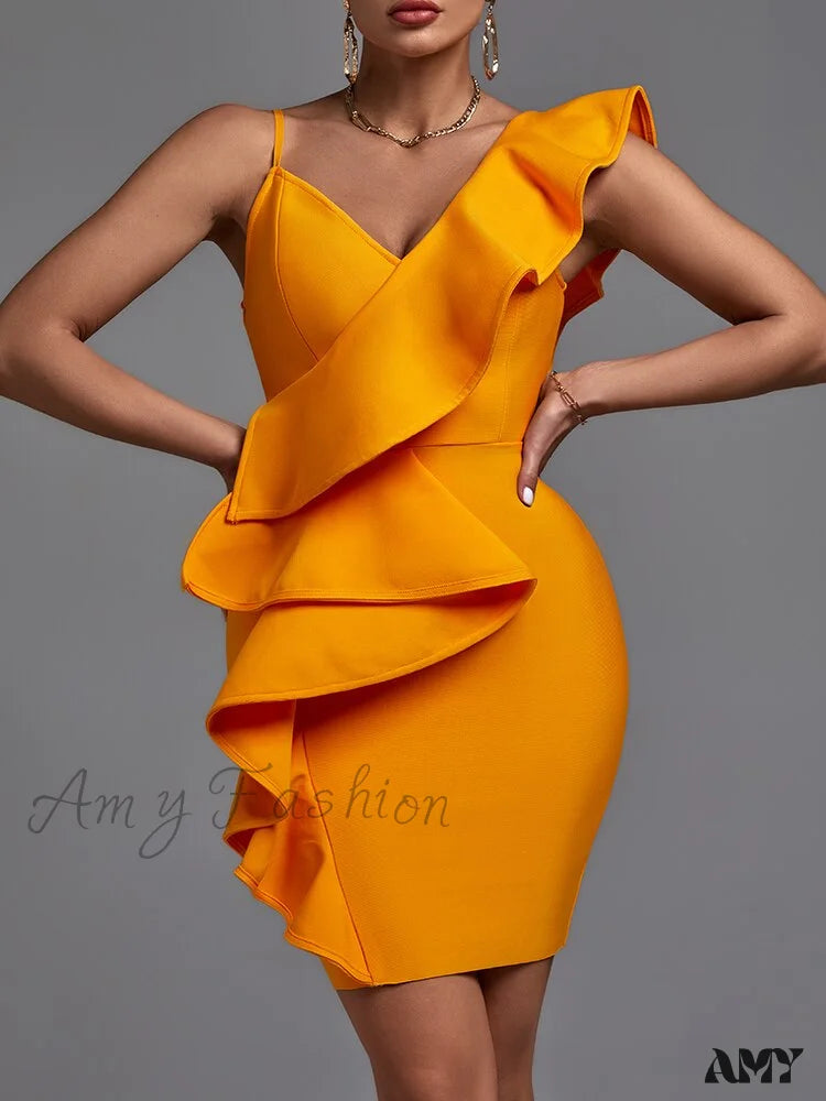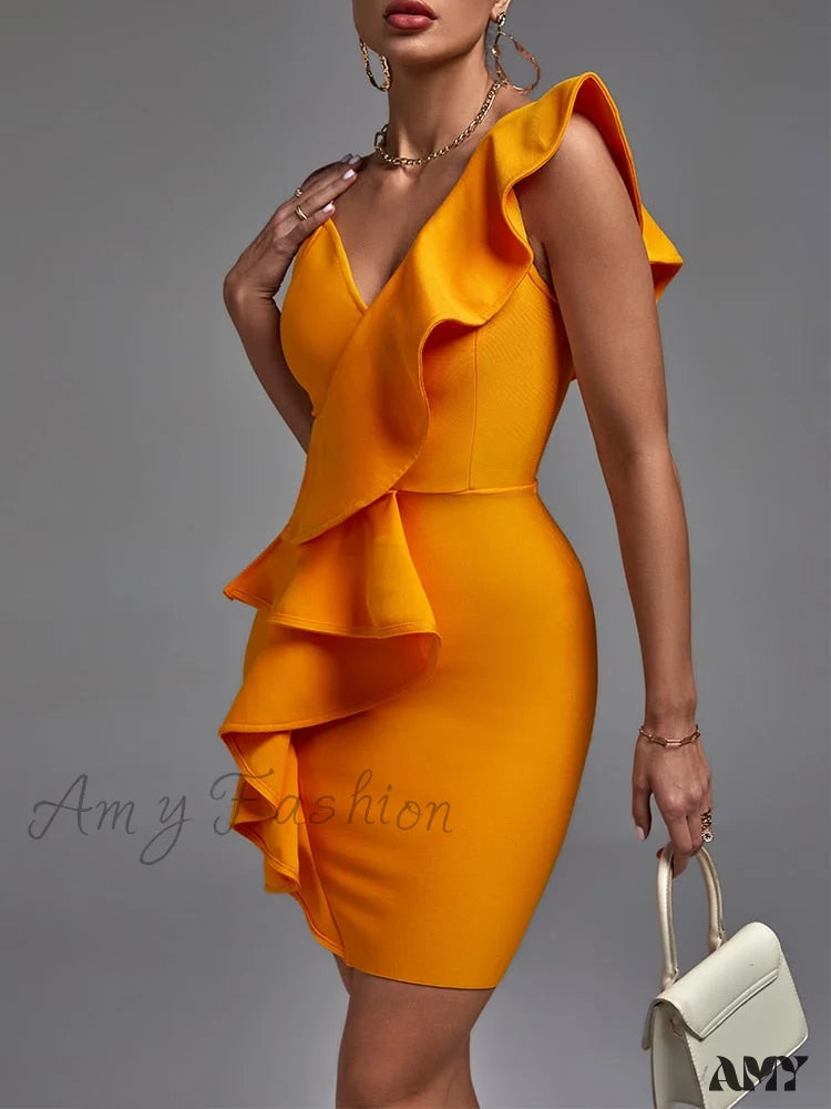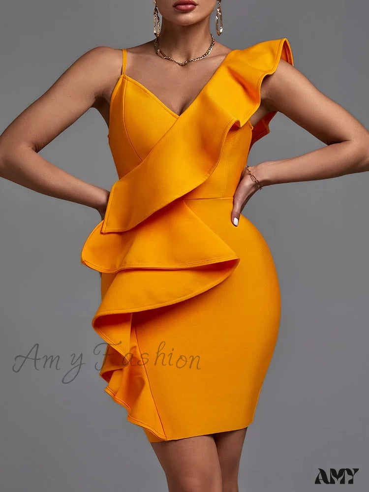 Amy Fashion - Elegant Sexy Ruffle Evening Club Party Dress