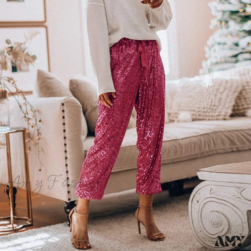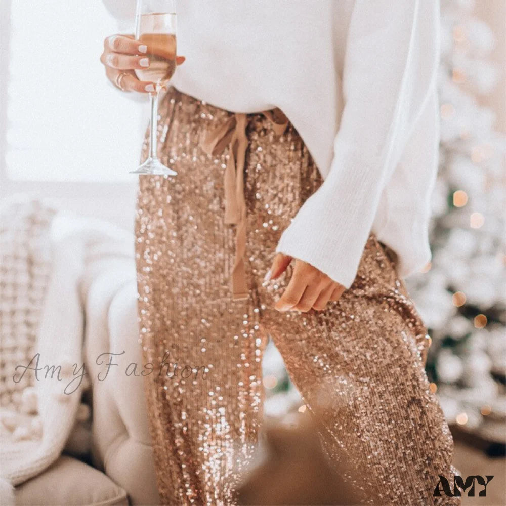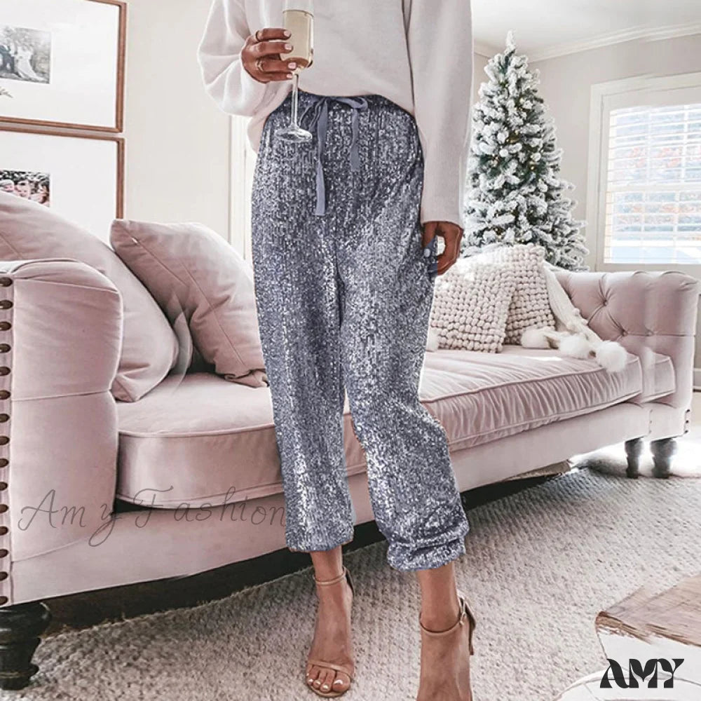 Amy Fashion - High Waist Sequin Long Pants