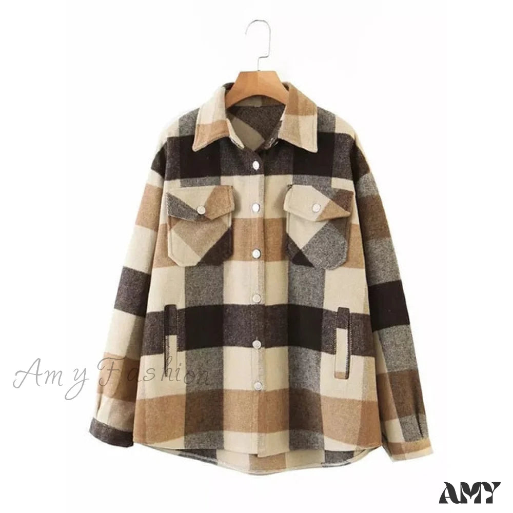 Amy Fashion - Ladies Thick Turn Collar Plus Size Female Coat