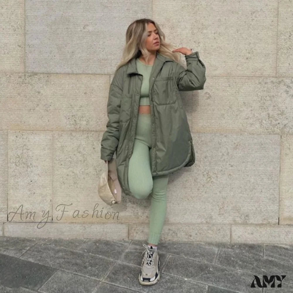 Amy Fashion - Loose Long Basic Pocket Shirt Coats