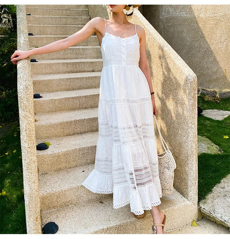 Sleeveless Back Elasticity White Cotton Boho Dress