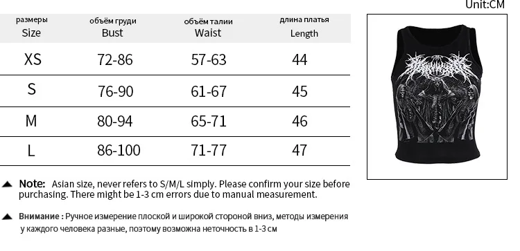 Summer Black Bodycon Sexy Punk Harajuku Print Sleeveless O-neck Crop Top