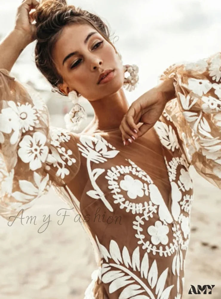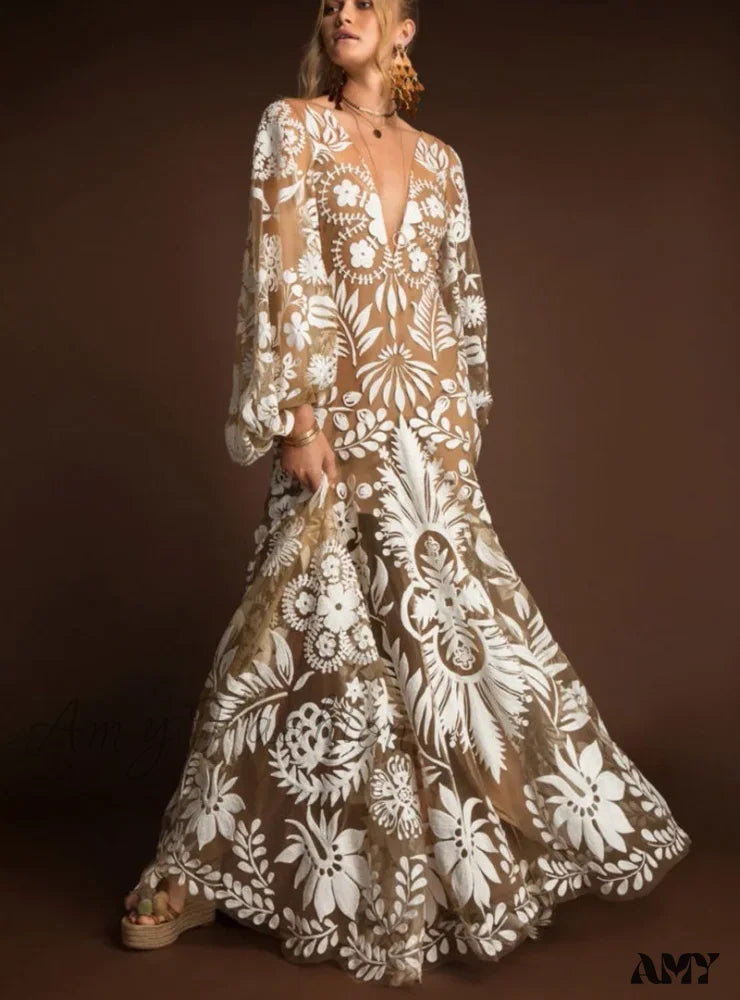 Amy Fashion - V-Neck Sexy Summer Casual Long Sleeve Boho Dress