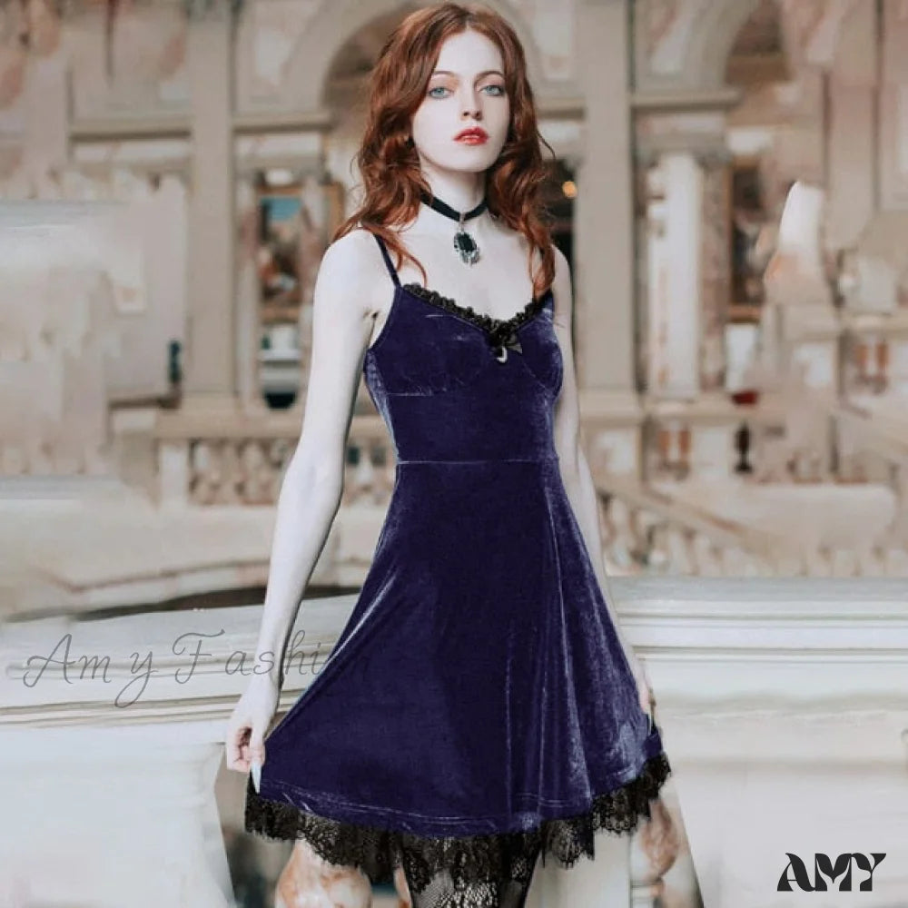 Amy Fashion - Aesthetics Lace Trim Velvet Ruffles Dresses