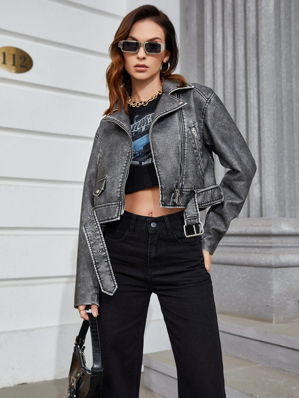 Increase quantity for Zipper Short Faux PU Leather Coat